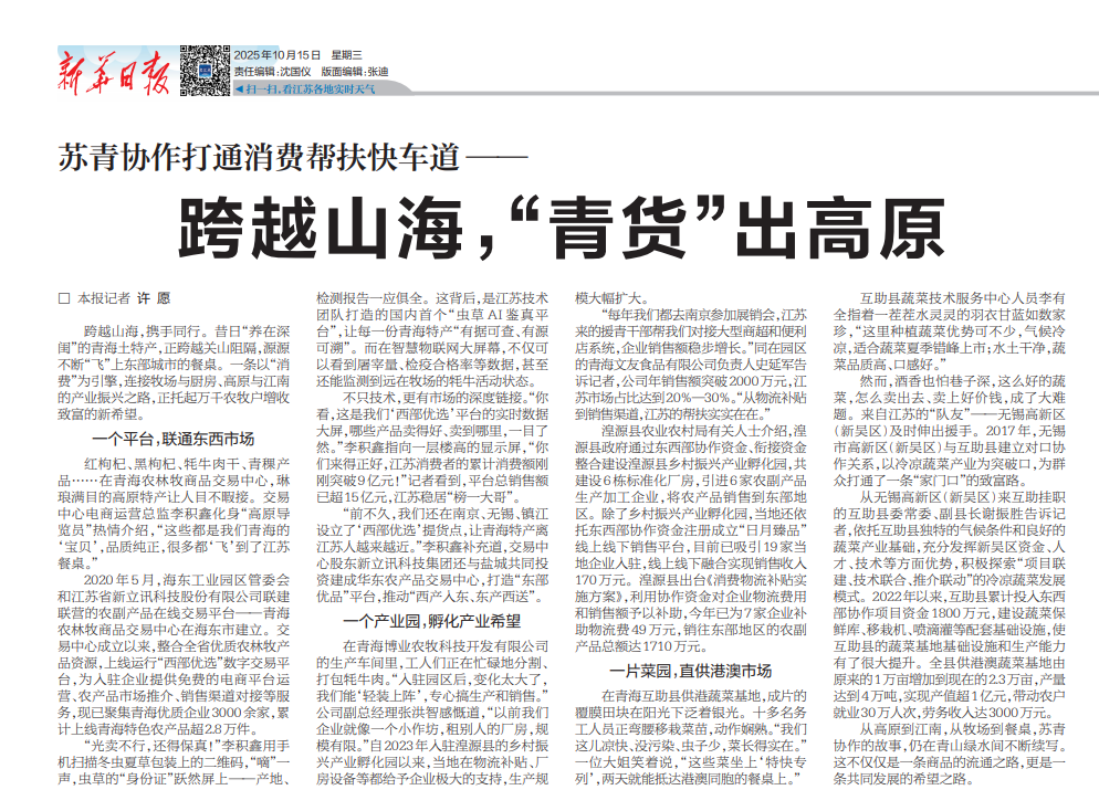 苏青协作打通消费帮扶快车道 —— 跨越山海,“青货”出高原10-15