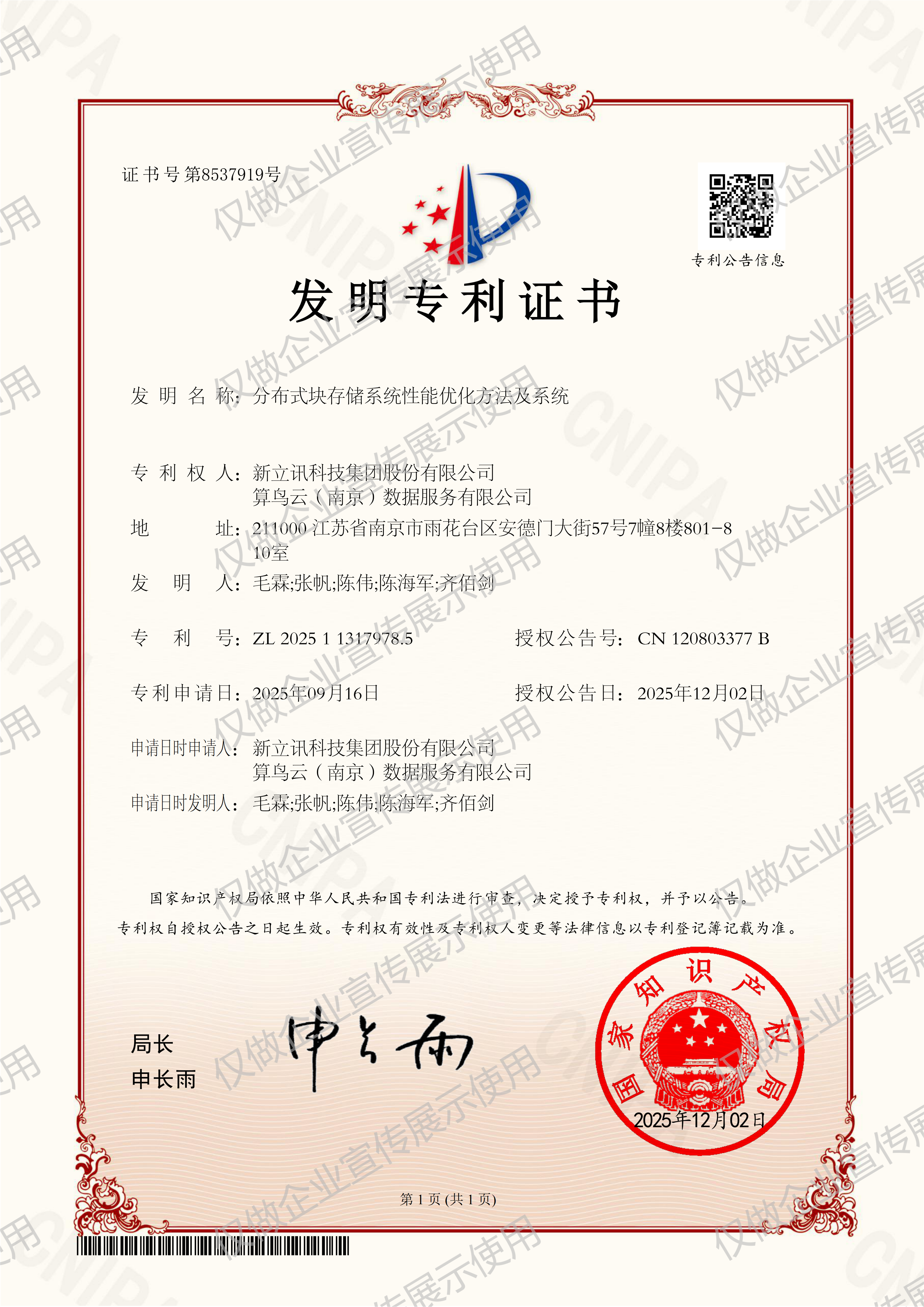 • 2019-12-03第30442750号 新立讯商标注册证(国际分类:35)查看