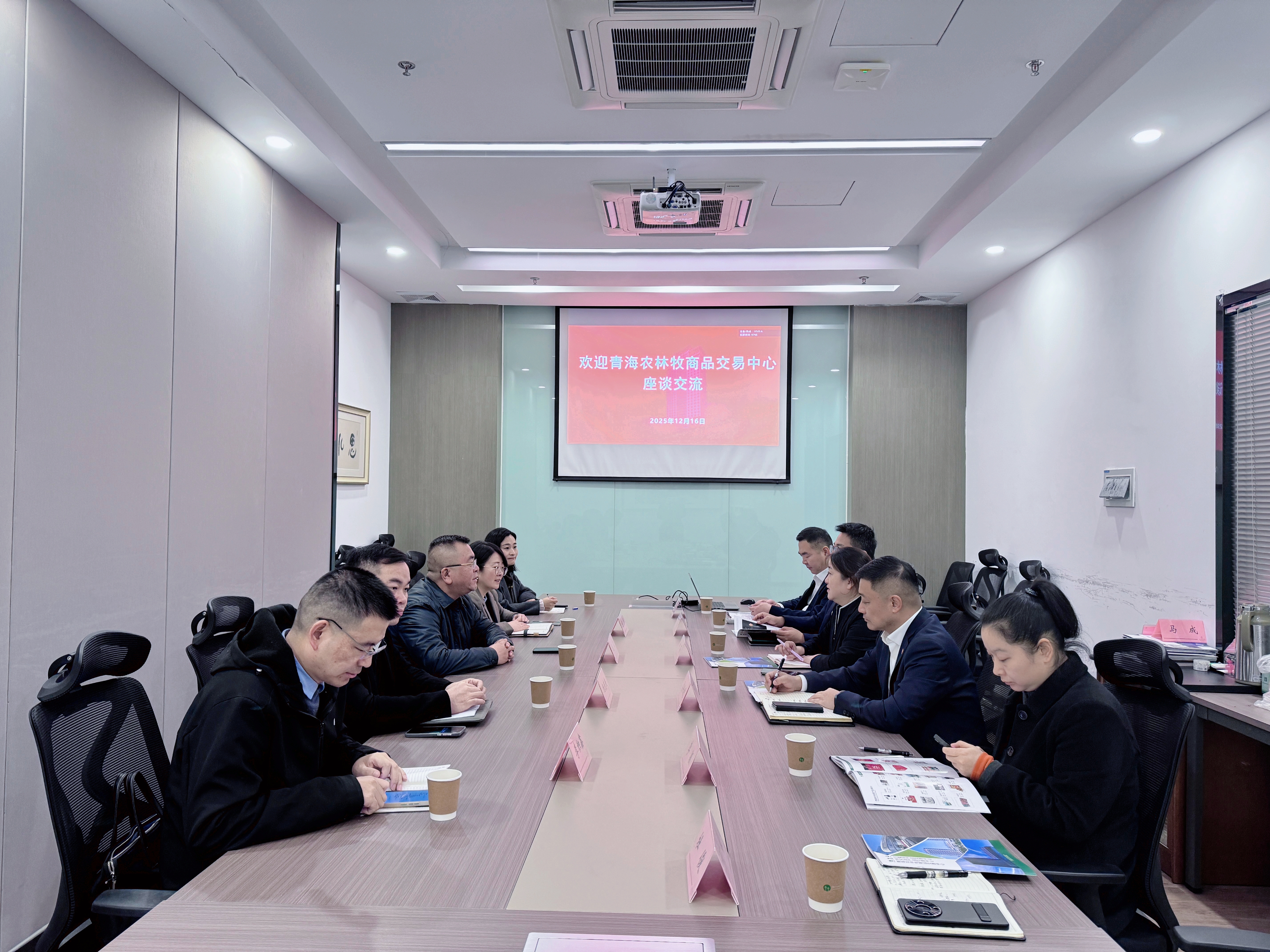 2025年12月16日,为持续深化落实苏青两省省长调研青海农林牧商品交易中心时指示精神,在苏青协作联动下,新立讯科技集团董事长(兼青海、华东、川藏农产品交易中心董事长)毛霖、常务副总经理李伟,青海交易中心副总经理杨庆庆、电商总监李积鑫等赴江苏钟山电子商务有限公司调研学习,与董事长刘蓓及相关部门负责人开展座谈交流。