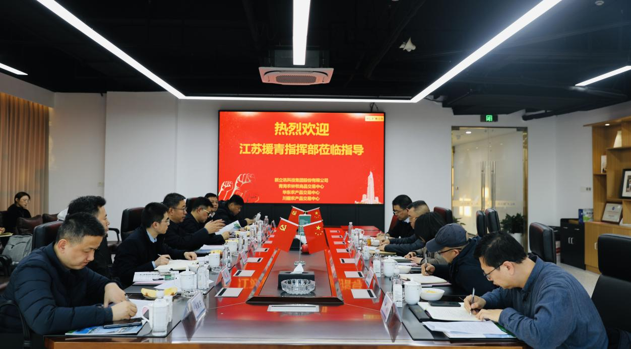 为持续深化落实苏青两省省长调研青海农林牧商品交易中心时指示精神,2026年1月21日,江苏省对口帮扶青海省前方党委书记、江苏省对口支援青海省海南州前方指挥部总指挥、省对口帮扶青海省工作队领队,青海省政府副秘书长、海南州副书记、副州长戴敏捷,江苏省对口帮扶青海省前方党委副书记、江苏省对口帮扶青海省工作队副领队,青海省农业农村厅党组成员李明等调研新立讯科技集团总部。新立讯科技集团董事长(兼青海、华东、川藏农产品交易中心董事长)毛霖、常务副总经理李伟及农产业互联网团队陪同调研并座谈。