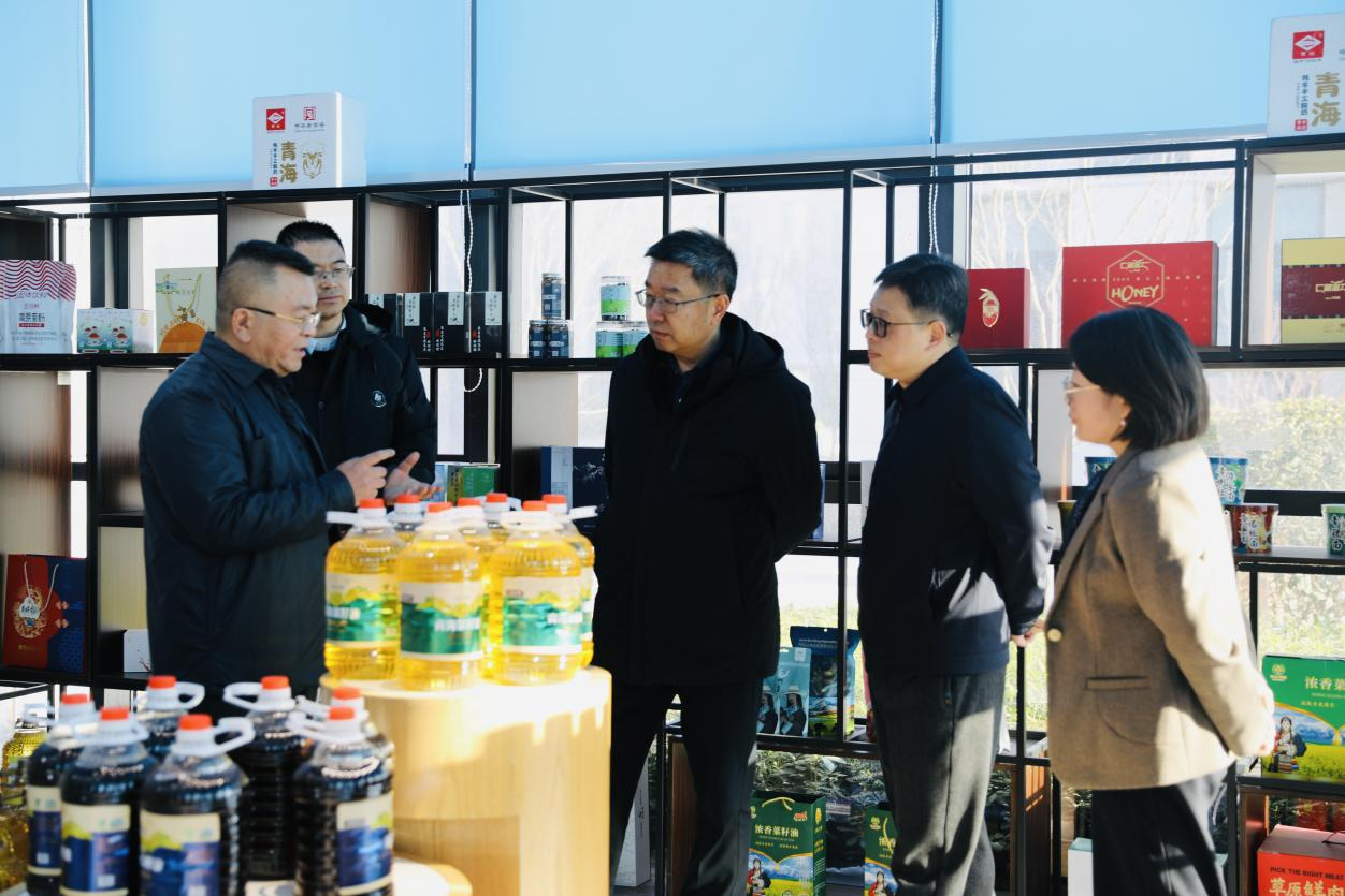 座谈前,大家参观了位于新立讯总部一层正在筹建的“东西部(苏青)协作农产品展销中心”,展厅由青海农林牧商品交易中心与新立讯精心策划设计,包含青海(海南州、西宁市、海东市等地州)农特产品展厅以及即将陈列展示的手工艺+非遗文创展厅,展销中心集展示、销售、交易及洽谈功能,内设 “东产西送 西产入东”农产数字大屏,精选展示青海“青品好物+西部优选”系列产品:蓝雀山、羊羔花等牦牛肉、藏羊肉、湟鱼菜籽油、锁鲜枸杞、雪山牦牛奶、青海湖纯牛奶、冬虫夏草等高原特色农产,系统展示新立讯与各地方政府联建运营的青海、华东、川藏农产交易中心实时滚动的农产交易数据。
