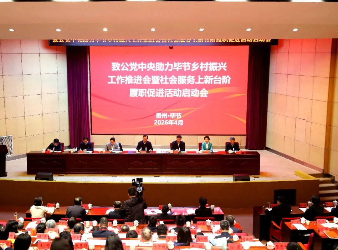 2026年4月1日,致公党中央助力毕节乡村振兴工作推进会暨社会服务上新台阶履职促进活动启动会在贵州省毕节市召开。全国政协副主席、致公党中央主席蒋作君出席会议并讲话。致公党中央常务副主席张恩迪主持会议,副主席杨兴平、徐晓兰出席会议。中国残联主席程凯,贵州省政协副主席、致公党贵州省委会主委孙诚谊出席会议并致辞。